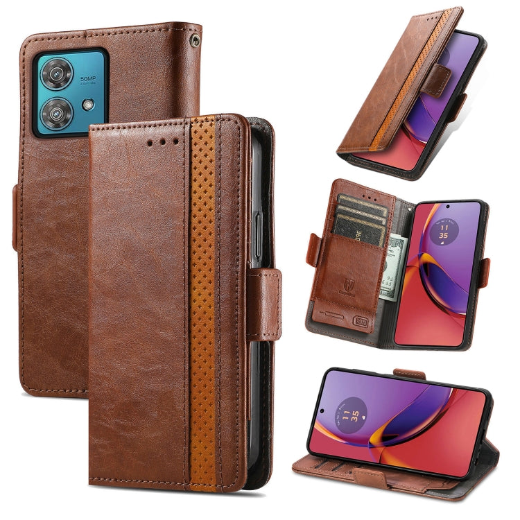 Funda de Cuero Caseneo para Motorola Moto G84 con Hebilla Magnética Dual (Marrón)