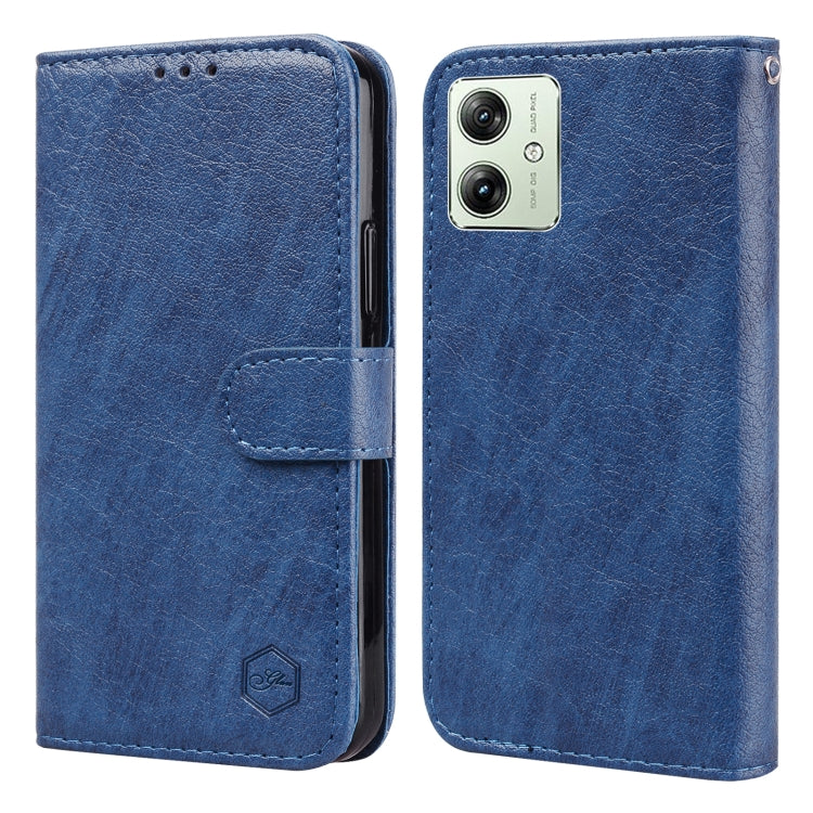 Funda para Motorola Moto G54 con Textura de Cuero Aceitoso PU + TPU (Azul Oscuro)