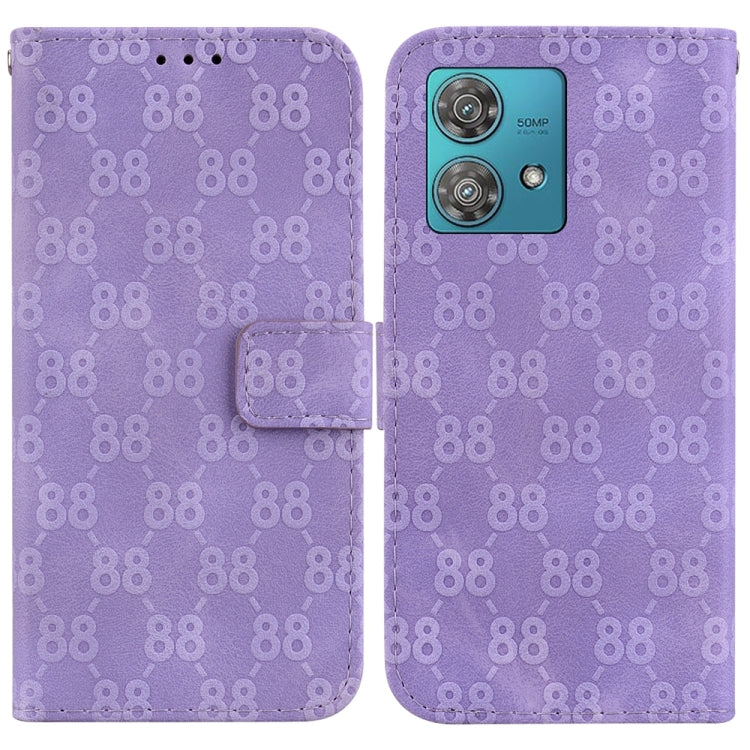 Funda para Motorola Edge 40 Neo de Cuero con Relieve en Forma de 8 Dobles (Púrpura)
