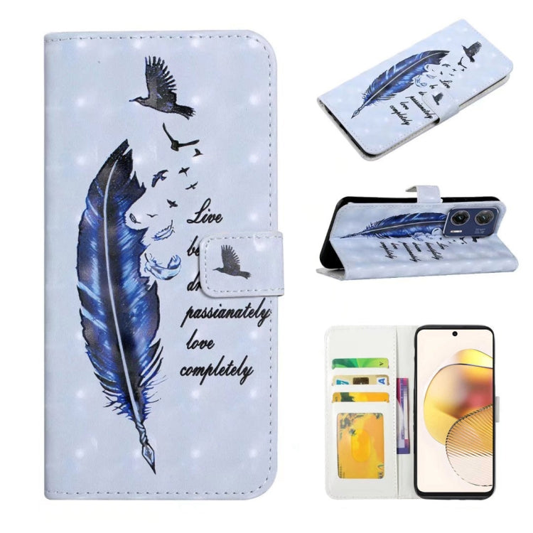 Funda de Cuero para Motorola Moto G73 con Dibujo 3D en Relieve al Óleo (Pluma Azul)