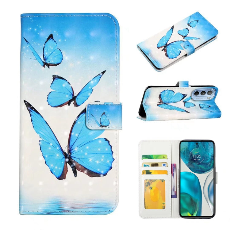 Funda de Cuero para Motorola Moto G52 con Dibujo 3D en Relieve al Óleo (3 Mariposas)