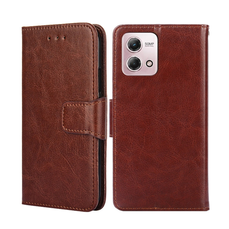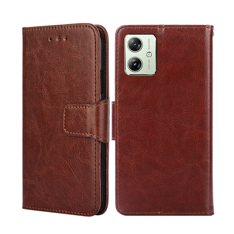 Funda de Cuero para Motorola Moto G54 5G Versión UE con Textura de Cristal (Marrón)