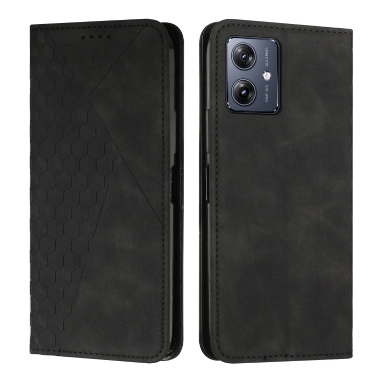 Funda de Cuero Magnético para Motorola Moto G54 Diamond Splicing Skin Feel (Negro)