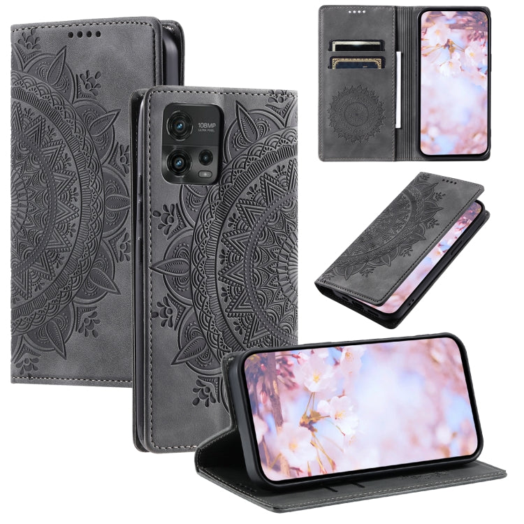 Funda de Cuero Magnética Totem para Motorola Moto G72 en Relieve (Gris)