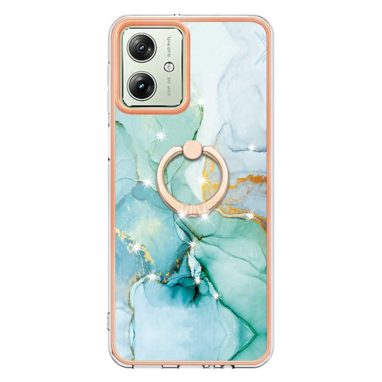 Funda TPU Mármol Galvanizado para Motorola Moto G54 con Soporte para Anillo (Verde)