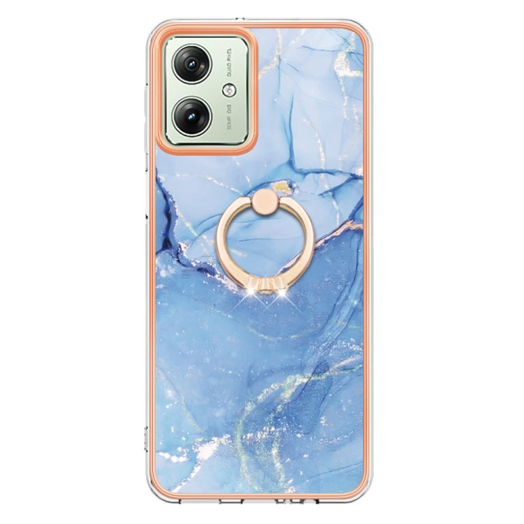 Estuche para Motorola Moto G14 IMD Doble Cara Mármol Galvanizado con Anillo (Azul)