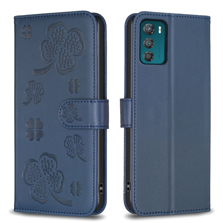Funda de Cuero para Motorola Moto G42 con Relieve de Cuatro Hojas (Azul)