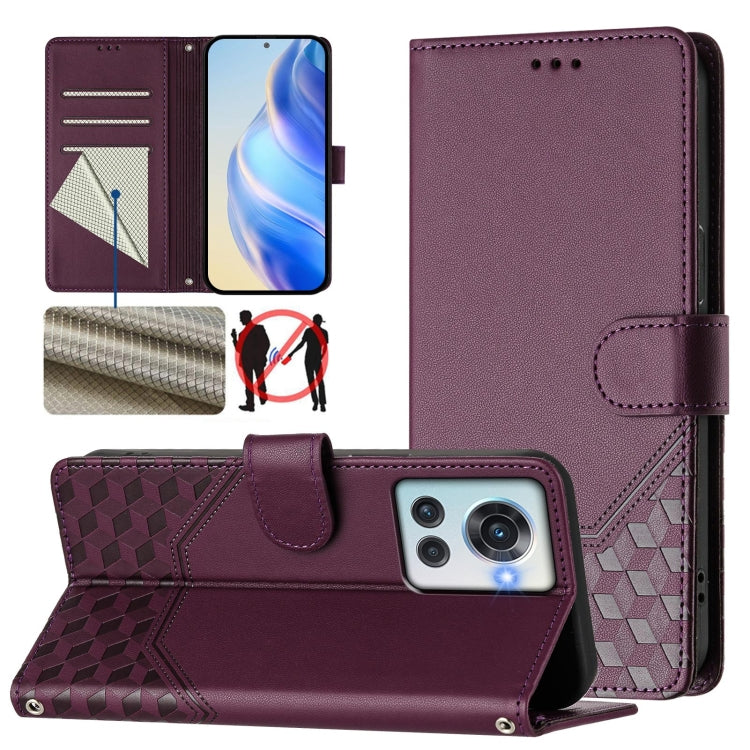 Funda de Cuero Rfid con Relieve de Panal para OnePlus Nord N20 5G (Violeta)