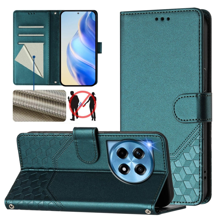 Funda de Cuero Rfid con Relieve de Panal para OnePlus 12 5G (Verde Pavo Real)