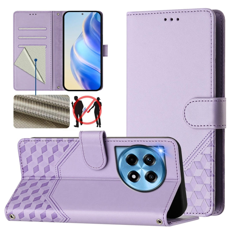 Funda de Cuero Rfid con Relieve de Panal Global para OnePlus 12R 5G (Morado Claro)