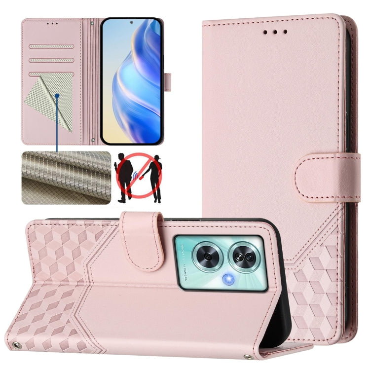 Funda de Cuero Rfid con Relieve en Panal para OnePlus Nord N30 Se 5G (Rosa)