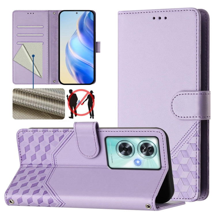 Funda de Cuero Rfid con Relieve en Panal para OnePlus Nord 3/Ace 2V (Morado Claro)