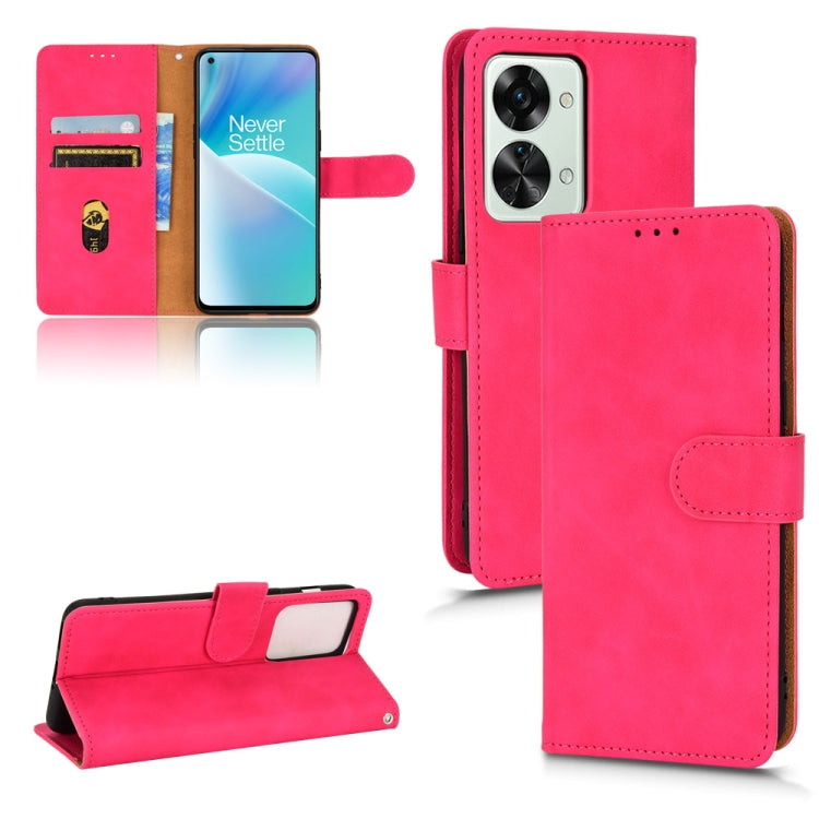 Funda Flip Leather Magnética para OnePlus Nord 2T 5G Skin Feel (Rosa Roja)