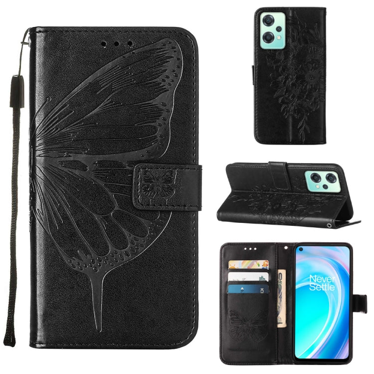 Funda para OnePlus Nord Ce 2 Lite 5G de Cuero con Mariposa en Relieve (Negro)