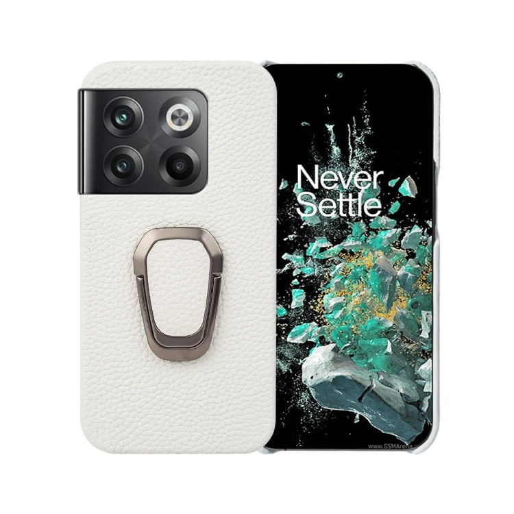 Funda de Cuero Genuino con Ring Holder para OnePlus Ace Pro / 11T (Blanco)