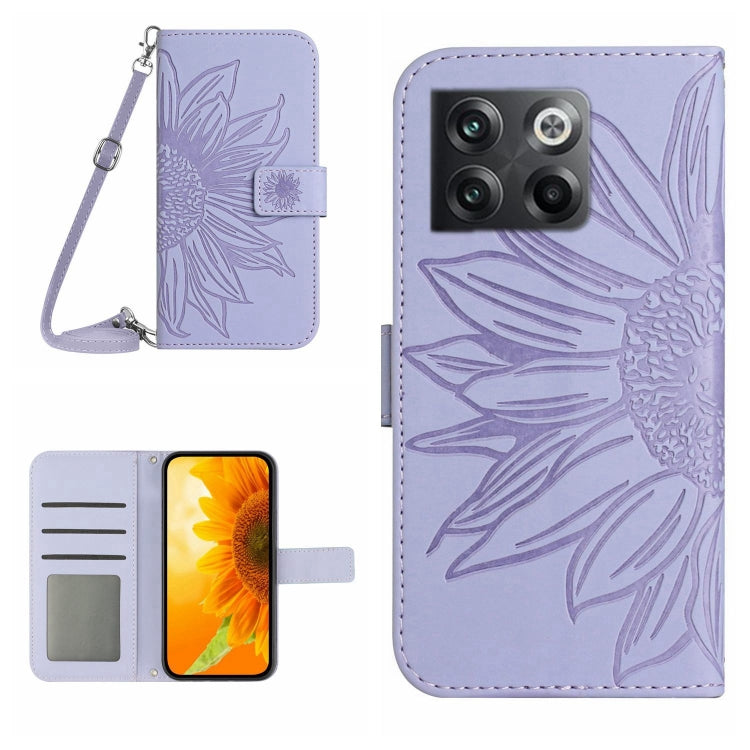Funda Flip de Cuero para OnePlus 10T con Cordón y Estampado Sun Flower (Púrpura)