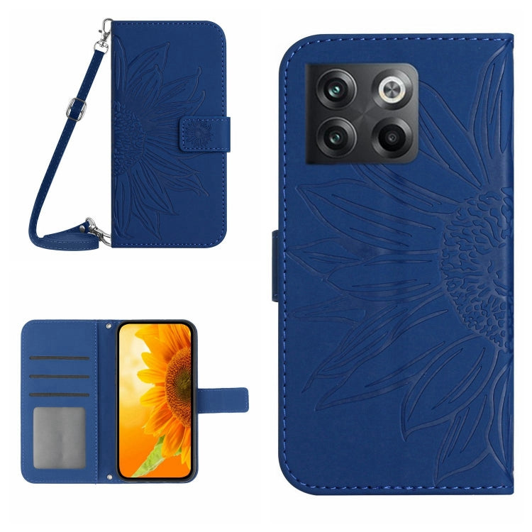 Funda Flip de Cuero OnePlus 10T Skin Feel con Cordón y Patrón Girasol (Azul Oscuro)