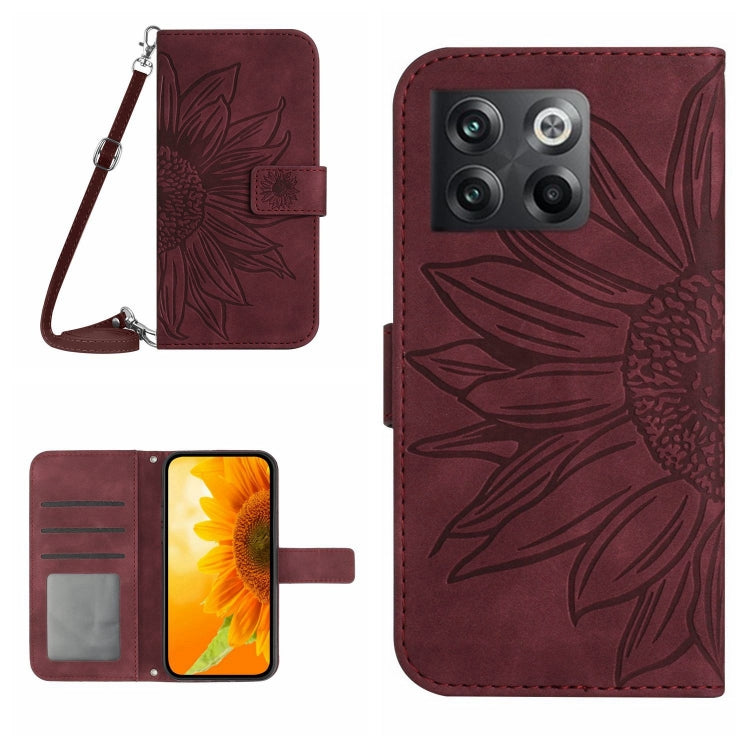 Funda Flip de Cuero para OnePlus 10T con Cordón y Diseño Sun Flower (Rojo Vino)