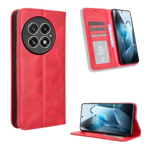 Funda de Cuero con Textura Retro y Hebilla Magnética para OnePlus 13 5G (Roja)