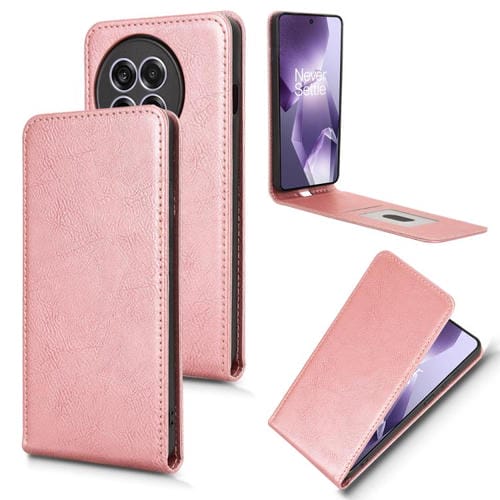 Funda de Cuero con Tapa Vertical Magnética para OnePlus Ace 5 y Ace 5 Pro (Oro Rosa)