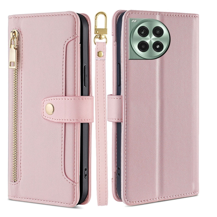 Funda de Cuero para OnePlus Ace 3 Pro 5G con Cremallera y Diseño de Oveja (Rosa)