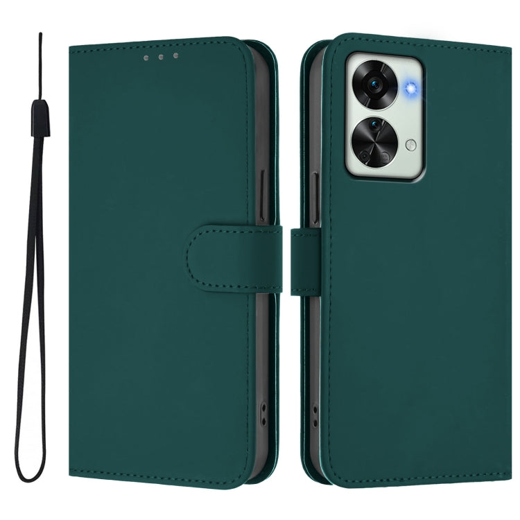 Funda de Piel Texturizada para OnePlus Nord 2T con Cordón (Verde Oscuro)