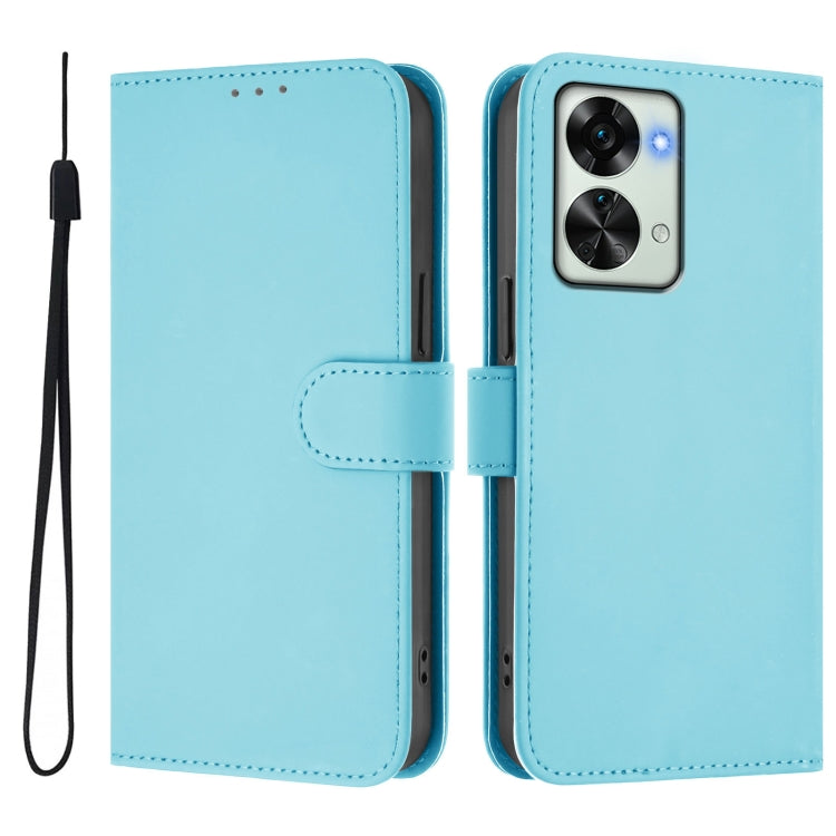 Funda de Piel para OnePlus Nord 2T con Textura Liso y Cordón (Azul Cielo)