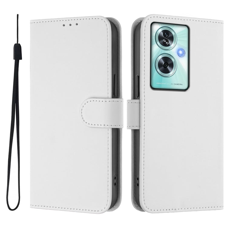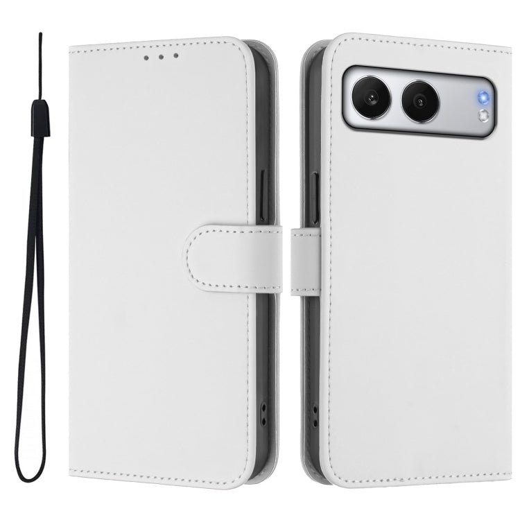 Funda de Cuero Textura Piel para OnePlus Nord 4 5G con Cordón (Blanco)