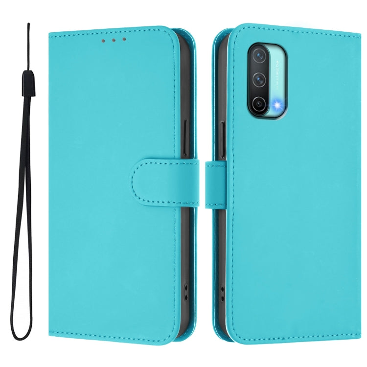 Funda de Cuero Textura Piel para OnePlus Nord Ce 5G con Cordón (Azul Lago)