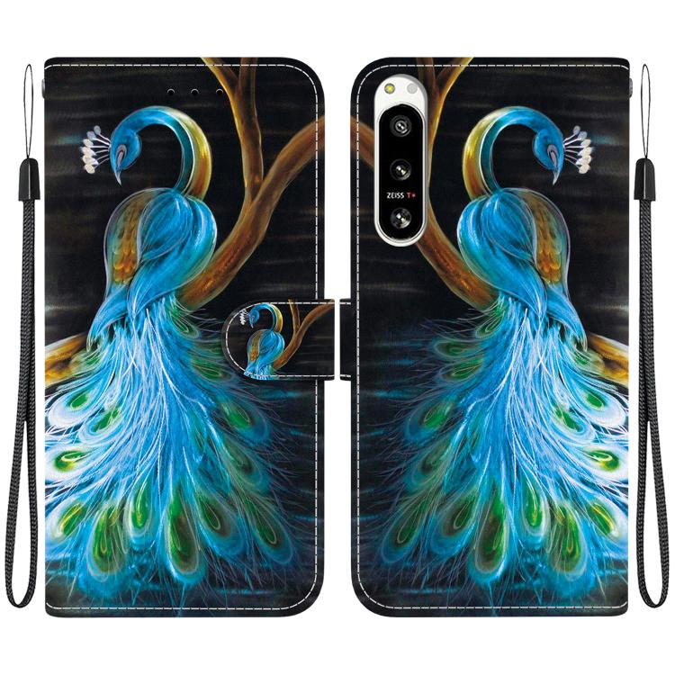 Funda de Cuero Sony Xperia 10 Vi con Dibujo de Colores y Textura de Cristal (Pavo Real)