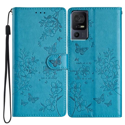Funda de Cuero para Teléfono TCL 403 con Relieve de Mariposa y Flor (Oro Rosa)