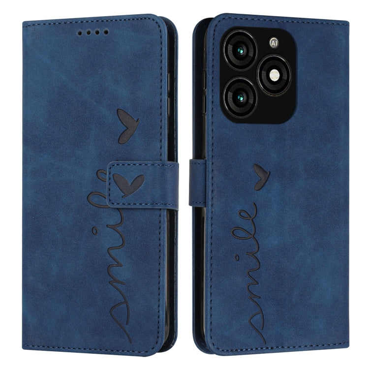 Funda de Cuero Itel A70 Skin Feel Heart con Relieve y Cordón Largo (Azul)