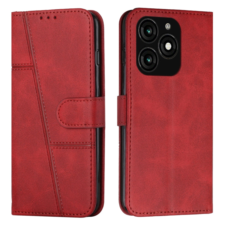 Funda de Cuero para Itel A70 Skin Feel con Patrón de Rayas y Cordón (Rojo)