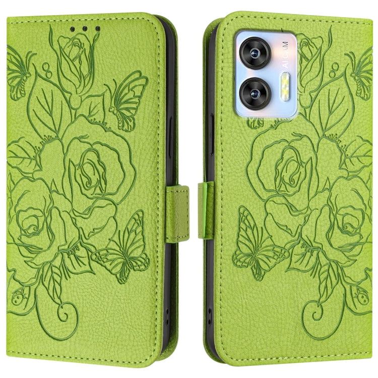 Funda para Oukitel C35 / C36 Cuero Antirrobo RFID con Rosa en Relieve (Verde)