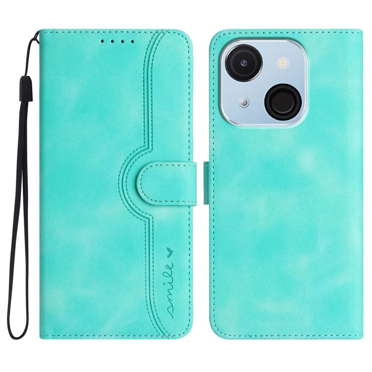 Funda de Piel Sintética con Diseño de Corazón para Teléfono Itel A50C (Azul Claro)