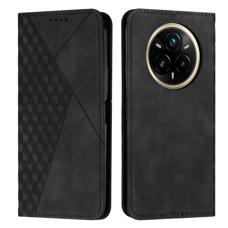 Funda de Cuero Magnética con Textura de Diamante para Realme 14 Pro+ (Negra)