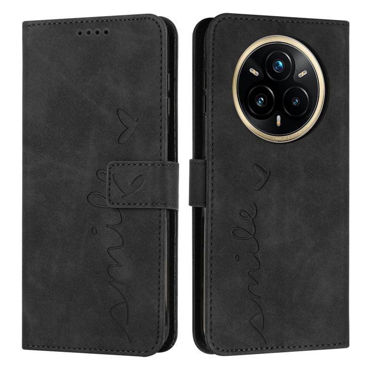 Funda de Cuero con Relieve de Corazón para Realme 14 Pro con Cordón Largo (Negro)