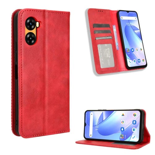 Funda para Teléfono Umidigi A15 / A15C Cuero Textura Retro Hebilla Magnética (Rojo)