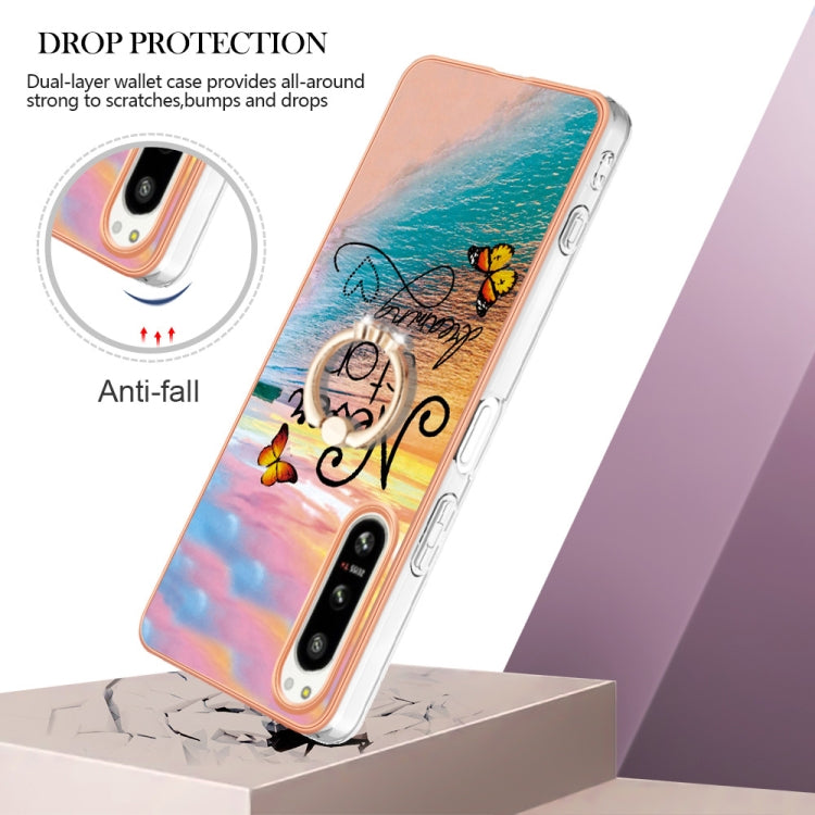 Caja TPU Galvanoplastia IMD con Anillo para Sony Xperia 5 IV (Dream Butterfly)