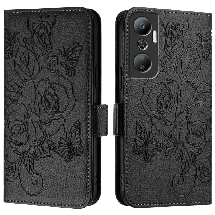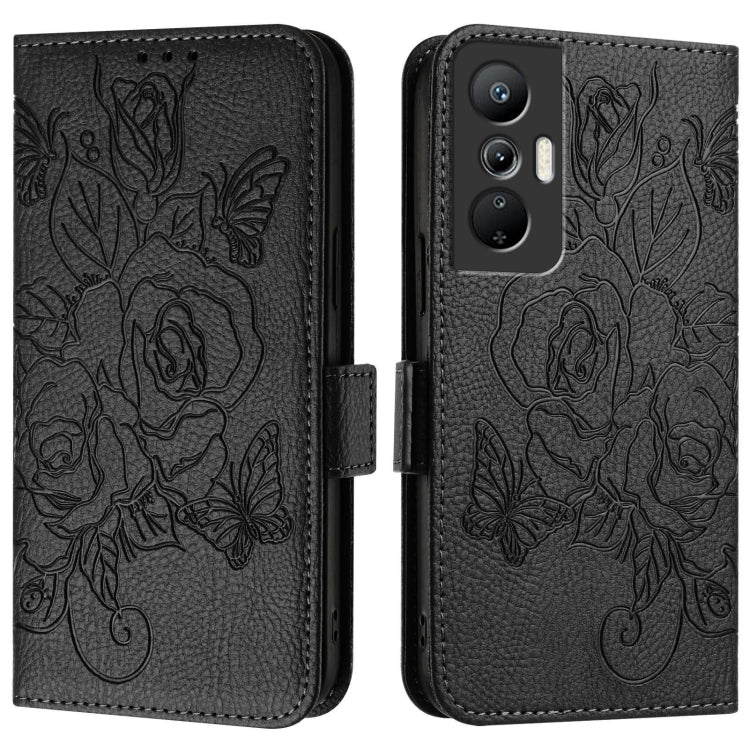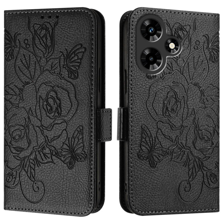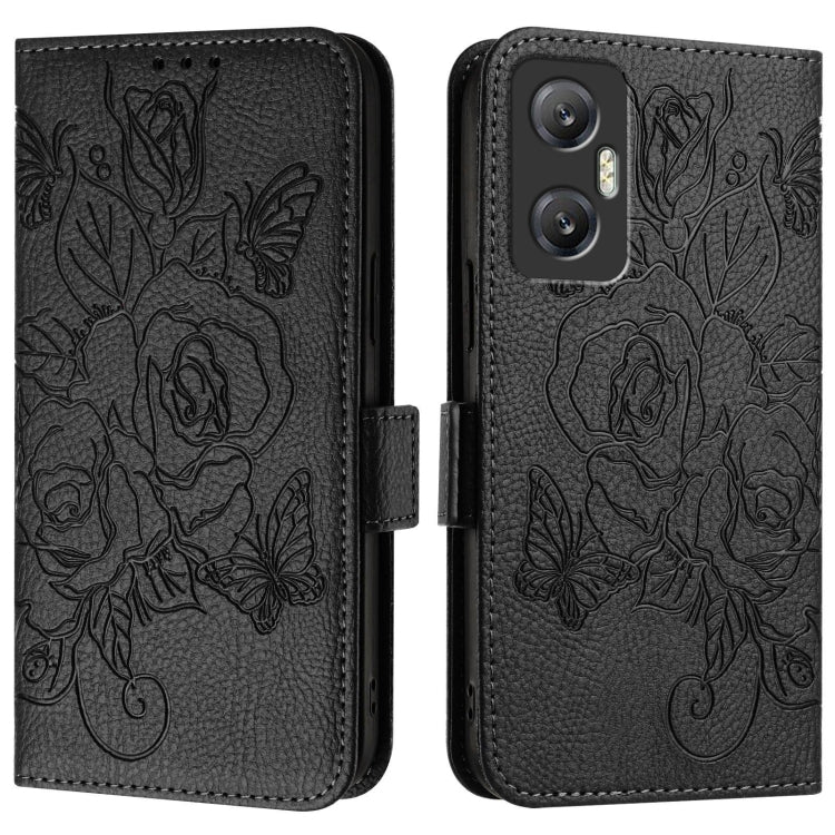 Estuche de Cuero Antirrobo para Infinix Note 30 Vip con Relieve Rose RFID (Negro)