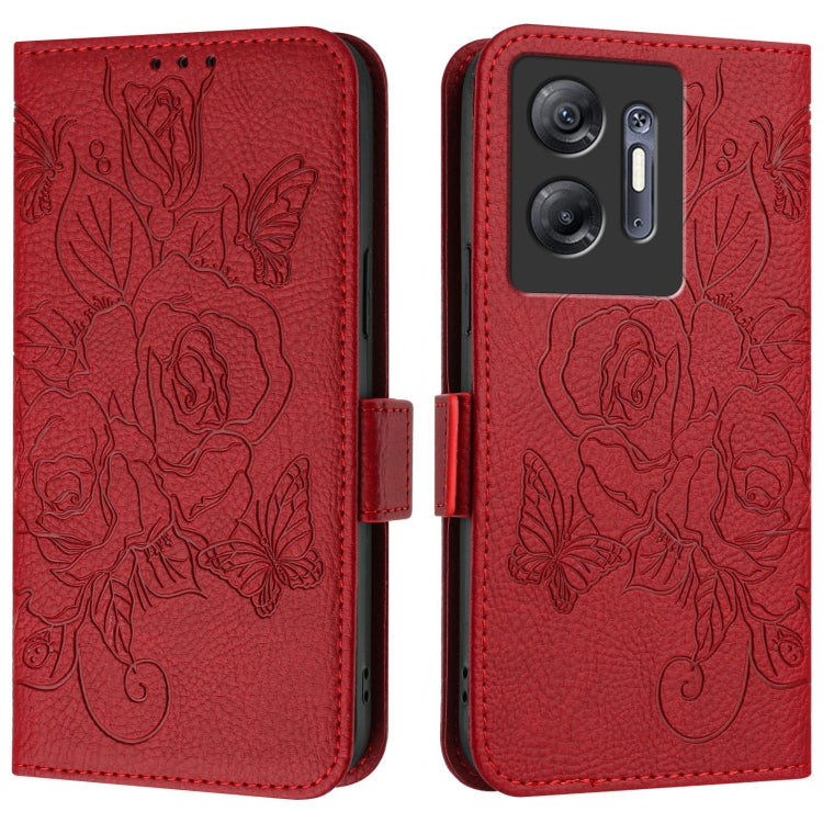 Estuche de Cuero Antirrobo RFID para Infinix Hot 30 5G con Relieve (Rojo)