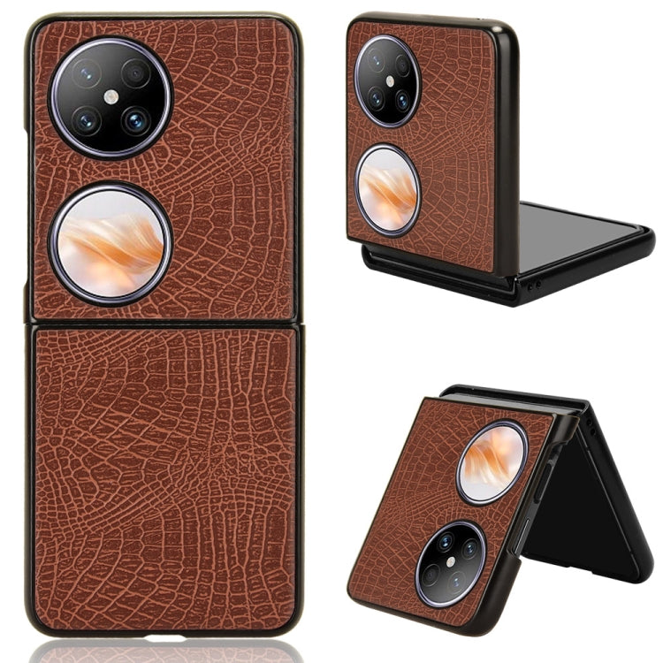 Funda para Huawei Pocket 2 Teléfono Plegable de Cuero con Textura de Cocodrilo (Marrón)