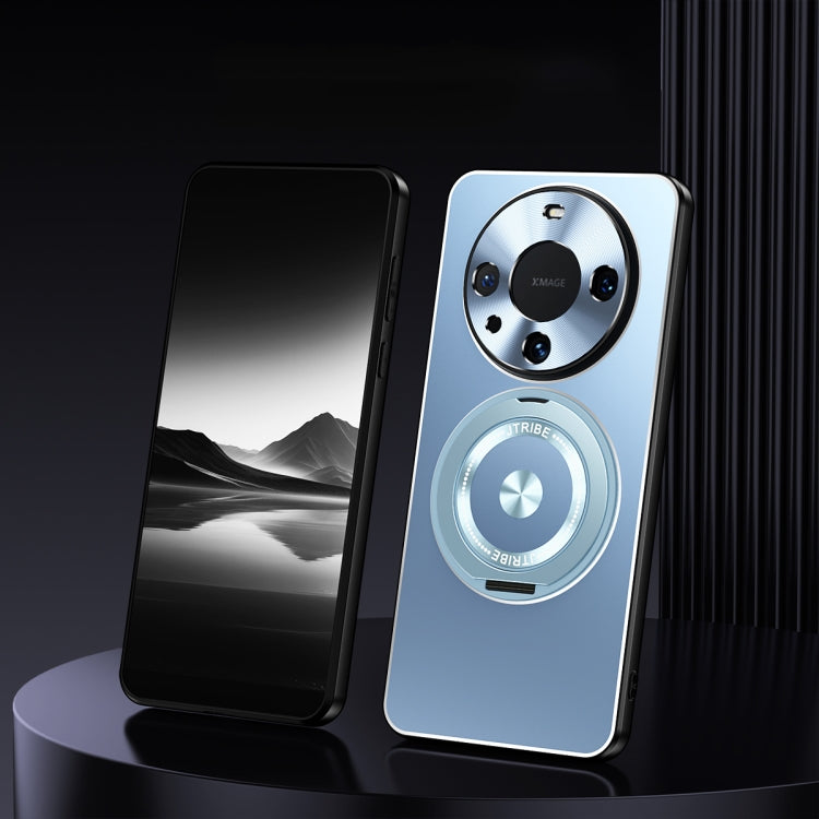 Funda de Metal Esmerilado con Soporte Giratorio para Huawei Mate 60 Pro+ (Azul)