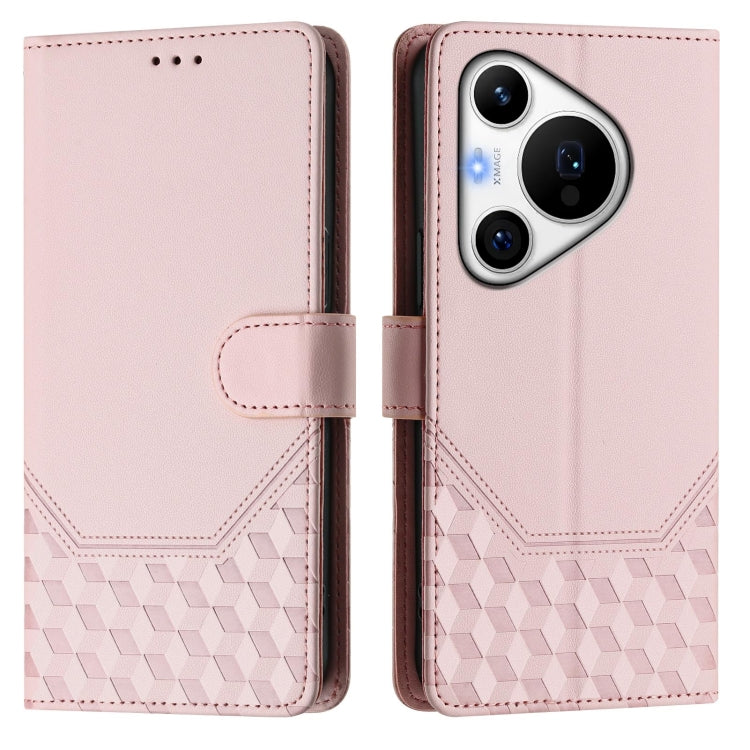 Funda de Cuero Rfid con Relieve en Panal para Huawei Pura 70 Pro/Pura 70 Pro+ (Rosa)