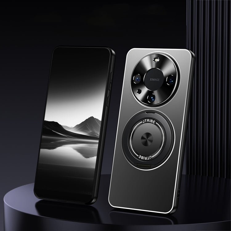 Funda de Metal Esmerilado con Soporte Giratorio para Huawei Mate 60 Pro+ (Negra)