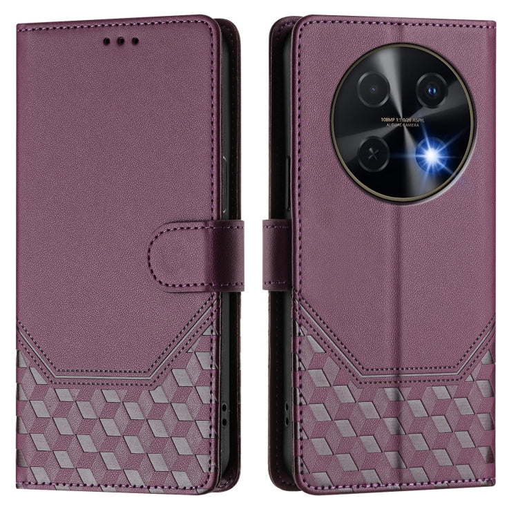 Funda de Cuero Rfid con Relieve en Panal para Huawei Nova 12I 4G (Violeta)