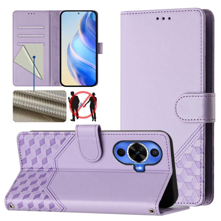 Funda de Cuero Rfid con Relieve en Panal para Huawei Nova 12S 4G (Morado Claro)