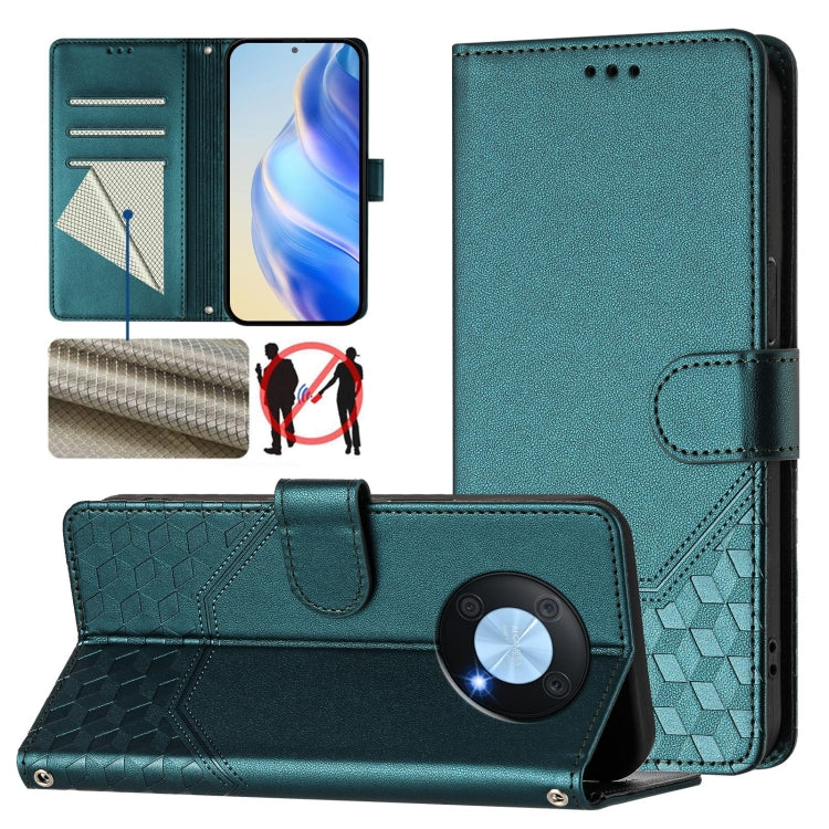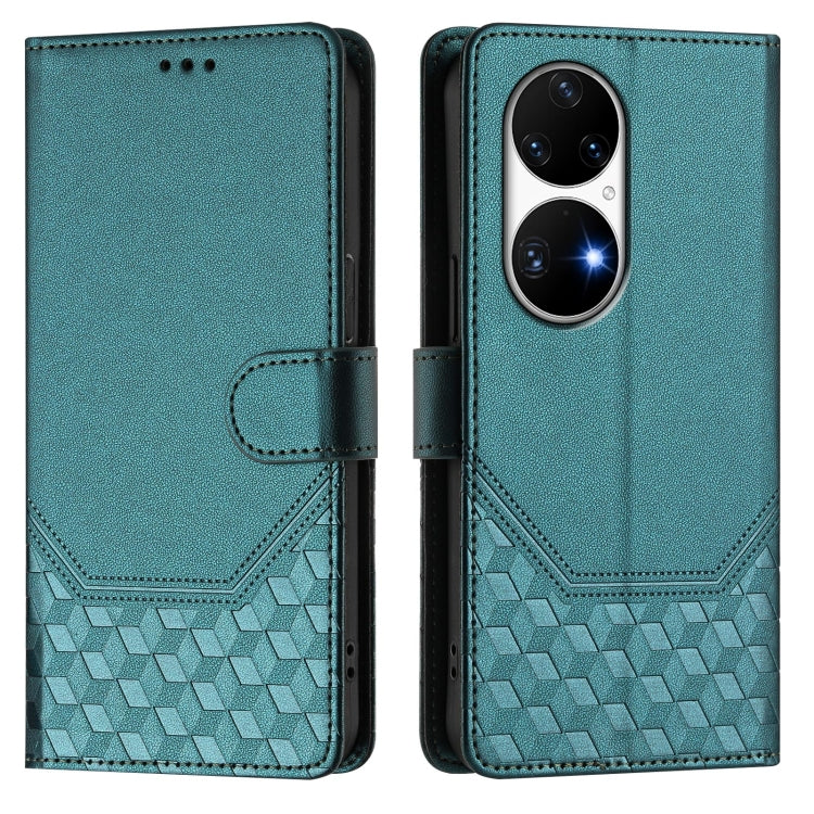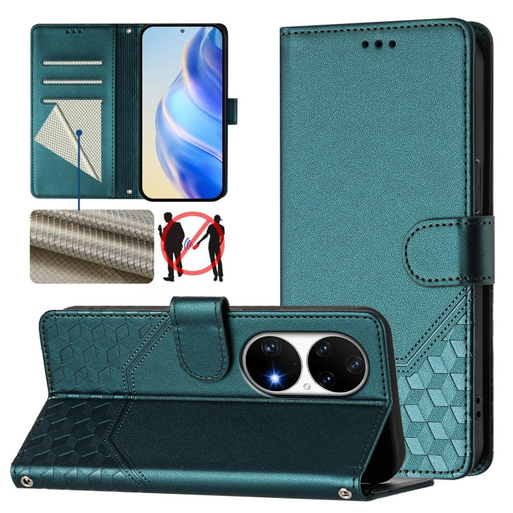 Funda de Cuero Rfid con Relieve en Panal para Huawei P50 Pro (Verde Pavo Real)