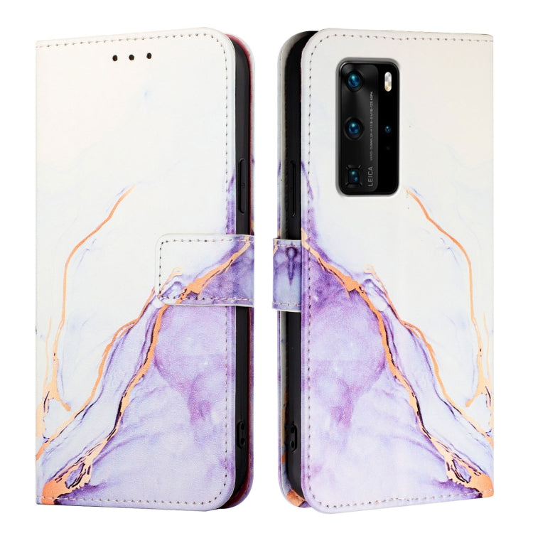 Funda de Cuero con Tapa Patrón Mármol Pt003 para Huawei P40 Pro (Blanco y Morado)
