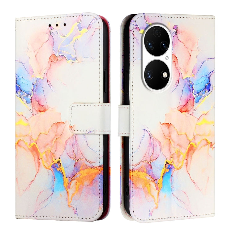 Funda de Cuero con Tapa para Huawei P50 Pro Pt003 con Patrón Mármol (Blanco)